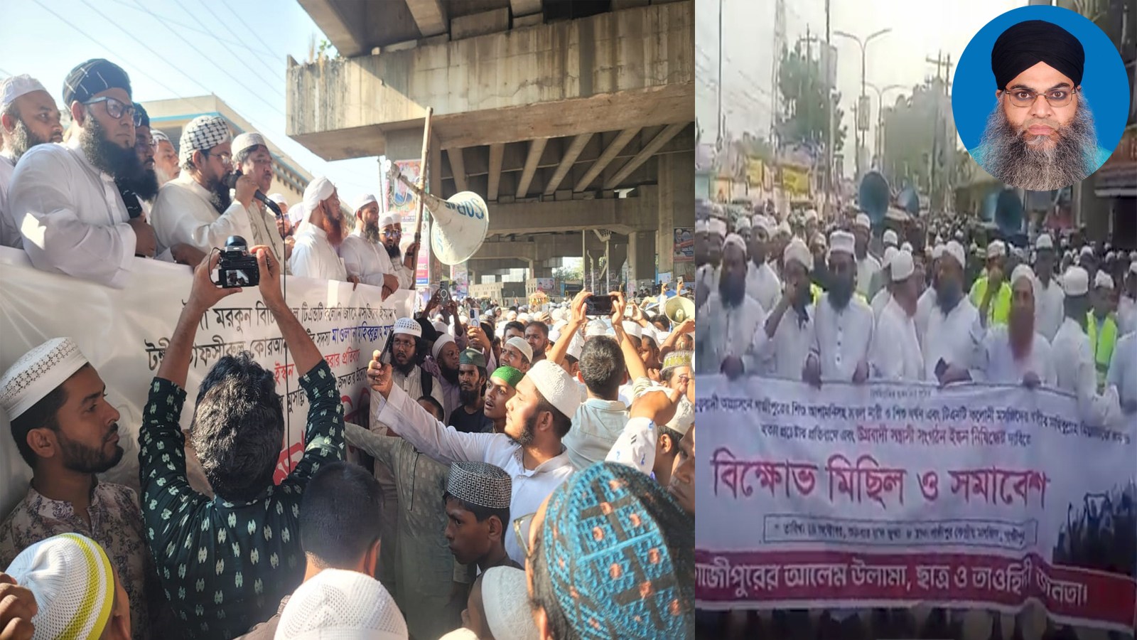 গাজীপুর মহানগরীর টঙ্গী টিএন্ডটি জামে মসজিদের খতিব ও পেশ ইমাম মুফতি মুহিবুল্লাহ মাদানীকে অপহরণ, বর্বর নির্যাতন এবং হিন্দুত্ববাদী সংগঠন ইসকন (International Society for Krishna Consciousness)-এর পক্ষ থেকে হুমকি দেওয়ার প্রতিবাদে আজ (শুক্রবার, ২৪ অক্টোবর, ২০২৫) রাজধানী ঢাকা ও গাজীপুরসহ সারাদেশের বিভিন্ন জেলা ও মহানগরে বিশাল মানববন্ধন ও প্রতিবাদ সমাবেশ অনুষ্ঠিত হয়েছে।