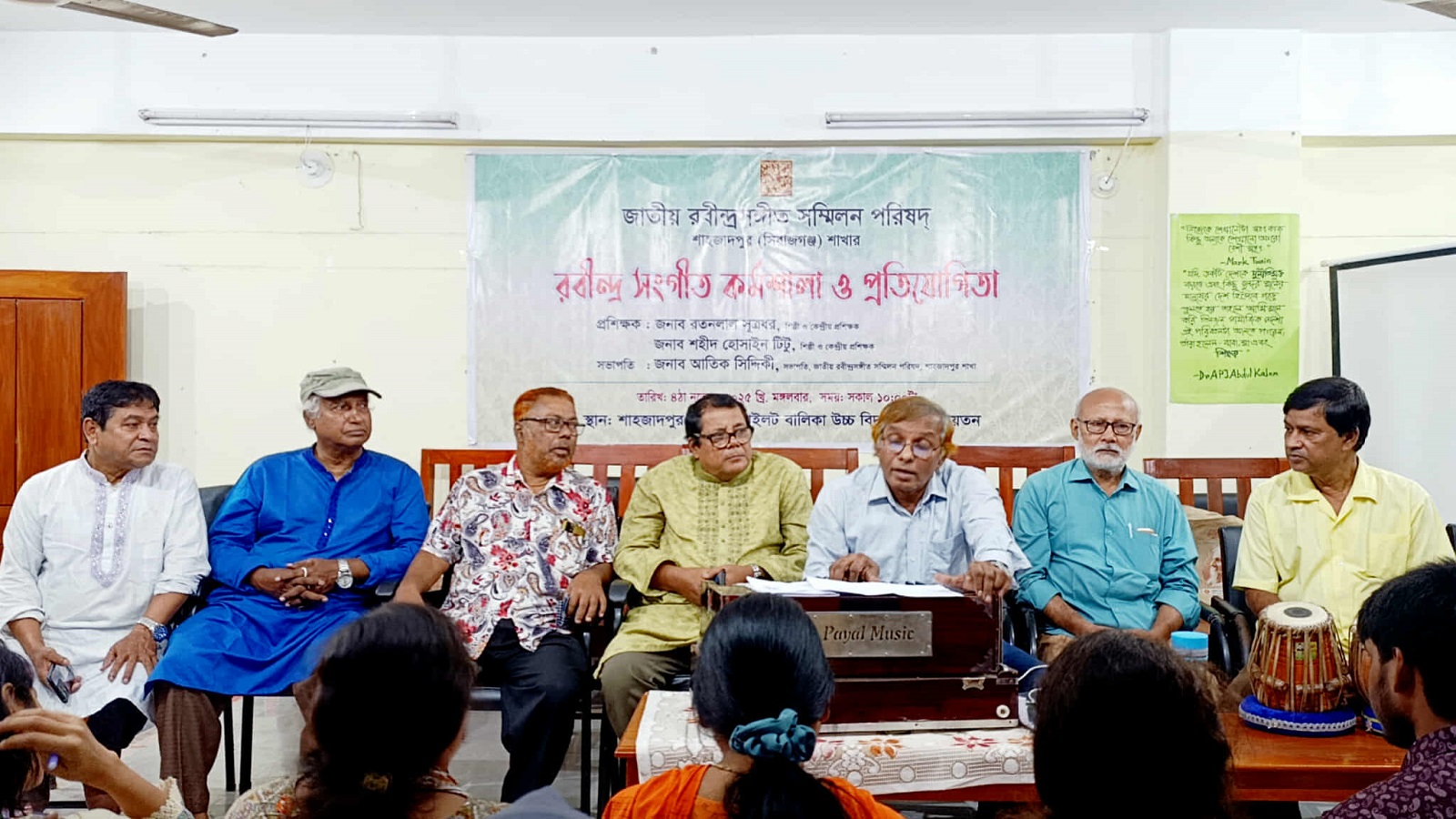 এতে কিশোর বিভাগে প্রশিক্ষক হিসেবে উপস্থিত ছিলেন সংগীত শিল্পী ও কেন্দ্রীয় প্রশিক্ষক রতন লাল সূত্রধর এবং সাধারণ বিভাগে প্রশিক্ষক ছিলেন সংগীত শিল্পী ও কেন্দ্রীয় প্রশিক্ষক শহীদ হোসাইন টিটু। প্রশিক্ষণ কর্মশালায় কিশোর বিভাগে ১৫ জন এবং সাধারণ বিভাগে ১২ জন শিক্ষার্থী অংশগ্রহণ করেন। এর আগে সকাল সাড়ে দশটায় কর্মশালার উদ্বোধন করেন জাতীয় রবীন্দ্রসংগীত সম্মিলন পরিষদ শাহজাদপুর শাখার সভাপতি আতিক সিদ্দিকী।
