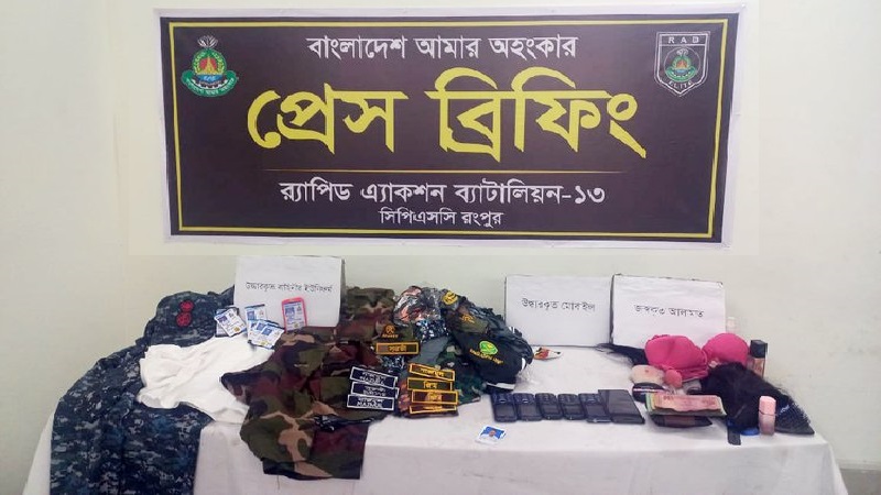 রংপুরে কখনো পুরুষ, কখনো নারী সেনাসদস্য পরিচয়ে প্রতারণা চালানো নাজমুল হাসান ওরফে জিম (২৪) নামের এক যুবককে গ্রেপ্তার করেছে র্যাব-১৩। বুধবার ভোরে গোপন সংবাদের ভিত্তিতে পীরগাছা উপজেলার অভিরাম গ্রামে অভিযান চালিয়ে তাঁকে আটক করা হয়। নাজমুল ওই এলাকার মো. সাজ্জাদ হোসেন ওরফে জাহিদুল ইসলামের ছেলে।