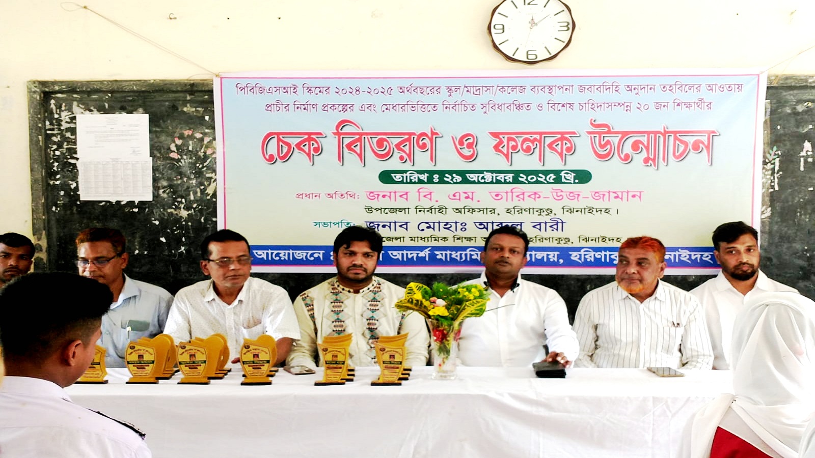 হরিণাকুণ্ডুতে ১ লক্ষ টাকার চেক পেলো শিক্ষার্থীরা