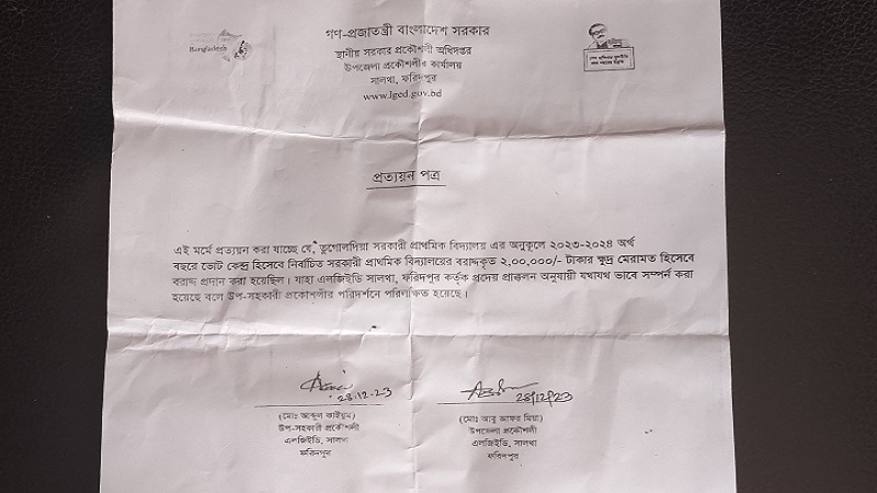 ফরিদপুরের সালথা উপজেলার শিক্ষাখাতে চলছে চরম দুর্নীতি ও অনিয়মের অভিযোগে তোলপাড়। ২০২৩-২০২৪ অর্থ বছরের ক্ষুদ্র সংস্কার ও নির্বাচনকালীন জরুরি মেরামতের