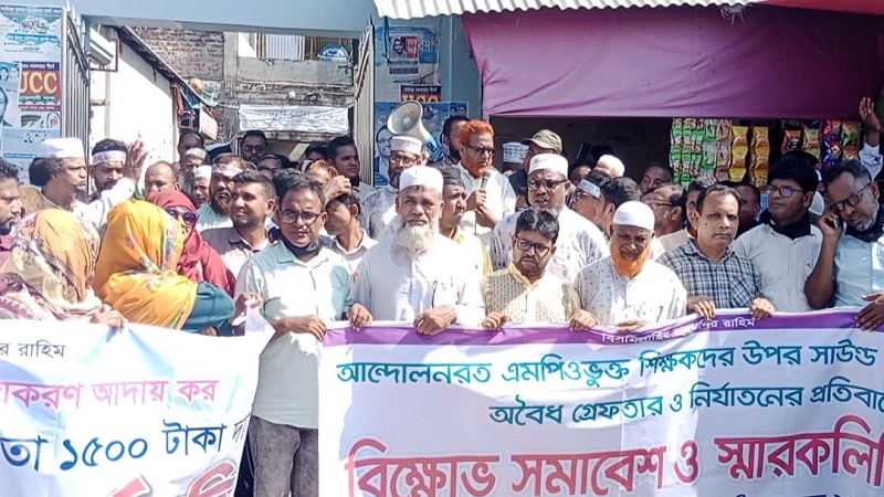 বেসরকারি এমপিওভুক্ত শিক্ষকদের ওপর সাউন্ড গ্রেনেড হামলা, অবৈধ গ্রেফতার ও নির্যাতনের প্রতিবাদে তীব্র ক্ষোভ প্রকাশ করে বিক্ষোভ মিছিল ও প্রতিবাদ