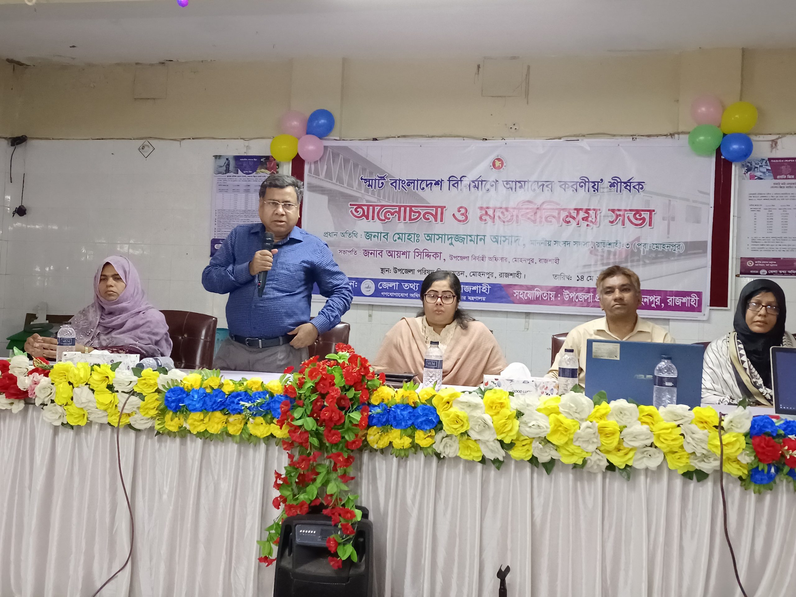 রাজশাহীর মোহনপুরে ‘স্মার্ট বাংলাদেশ বিনির্মানে আমাদের করণীয়’ শীর্ষক আলোচনা সভা ও মতবিনিময় সভা অনুষ্ঠিত হয়েছে। মঙ্গলবার (১৪ মে) সকালে উপজেলা