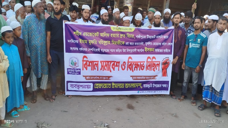 ফরিদপুরে সালথায় বাসর রাতেই নববধূর স্বামী আত্মহত্যা ঘোড়াঘাটে হরিবাসর উৎসব পরিদর্শন করলেন – জাহিদ হোসেন বক্তাদের ইসকন নিষিদ্ধের কঠোর হুঁশিয়ারি: টঙ্গীর খতিব মুফতি মহিবুল্লাহকে অপহরণ ও হুমকির প্রতিবাদে দেশজুড়ে ইসলামী সংগঠনের মহাসমাবেশ জলঢাকায় সদস্য পদ ফিরে পেলেন বিএনপি নেতা কমেট চৌধুরী  ডিমলায় স্কুলের মাঠে হাট বসানোর প্রতিবাদে শিক্ষক-শিক্ষার্থীদের মানববন্ধন ঐতিহ্যবাহী তিনটিলা বনবিহারে ২৬ তম দানোত্তম কঠিন চীবর দানোৎসব অনুষ্ঠিত উত্তরখানে মাদক, জুয়া ও চুরি বিরোধী র‍্যালি ও পথসভা অনুষ্ঠিত ভাবগম্ভীর পরিবেশে গাজী কালুশাহ (রঃ) এর ৪২তম বার্ষিক ওরশ মাহফিল সম্পন্ন, শেষে পুরস্কার বিতরণ কথিত সাংবাদিক আনিসুর রহমানের বিরুদ্ধে চাঁদা দাবির অভিযোগ ইসকন নিষিদ্ধের দাবিতে বাঙ্গালহালিয়ায় হেফাজতের বিক্ষোভ মিছিল